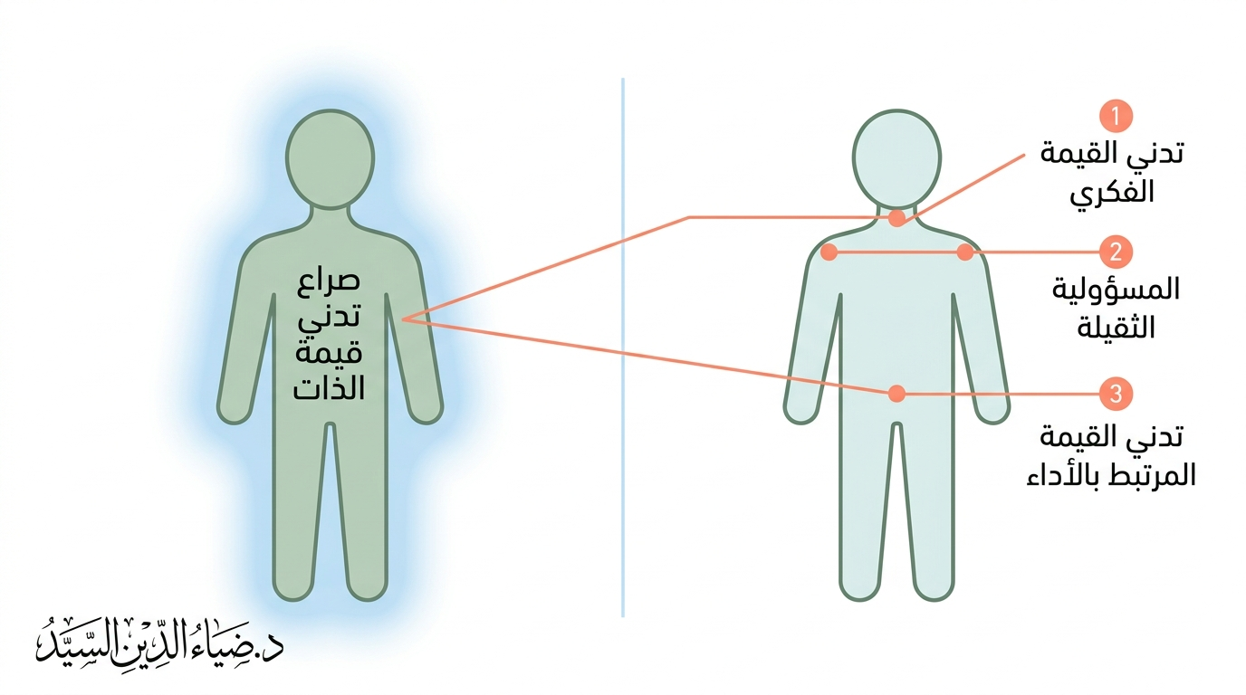 إذا نظرنا إلى الكمالية من زاوية الطب الشعوري التصنيفي (الذي يربط المشاعر بأعضاء محددة)، سنجد أن السمة الجوهرية للكمالي هي "صراع تدني قيمة الذات" (Self-Devaluation Conflict).