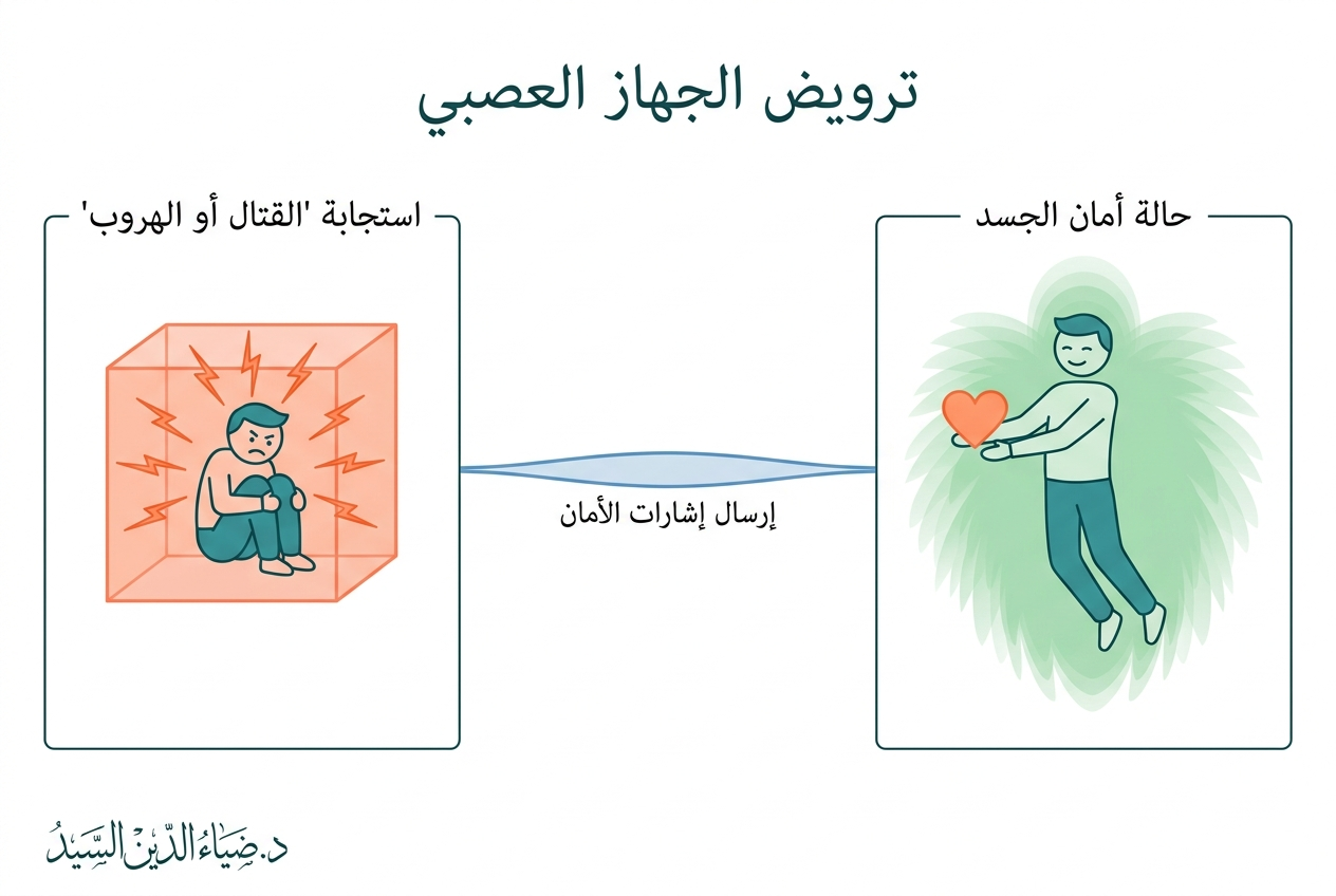 بما أن المشكلة هنا انتقلت للجسد، فالحل يجب أن يكون جسدياً أيضاً. لا يمكنك "التفكير" للهروب من التوتر، يجب أن "تُشعر" جسدك بالأمان.
